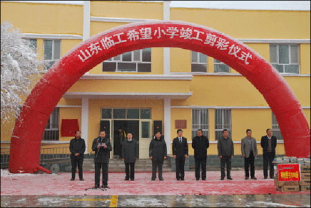 2011年12月7日,在中国西部的喀什地区疏勒县塔孜洪乡,山东临工工程机械有限公司援建的“山东临工希望小学”正式竣工揭牌。新疆自治区和山东省的青基会、共青团及教育部门领导,山东临工工程机械有限公司纪委书记周维升、山东临工经销商喀什永祥公司总经理梁勇以及希望小学的200多名师生们见证了山东临工*一所希望小学的成立。