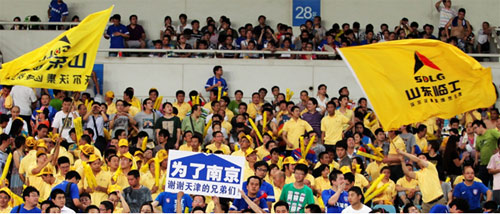 在比赛现场,临工整齐的黄色方阵成为赛场内一道亮眼的风景线,临工团队与现场万名球迷一同为场上球员摇旗呐喊,以饱满的热情为每一个进球声援助威。经过激烈的角逐,主队江苏舜天终3:2力克天津泰达,为此次观球活动画上一个圆满的句号。