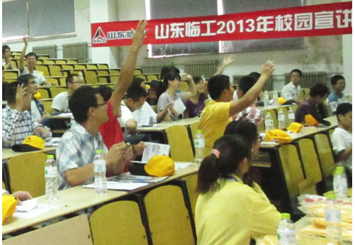 9月21日,山东临工2013年校园招聘活动在哈尔滨工业大学威海分校M楼报告厅正式拉开帷幕。据了解,本次宣讲招聘将面向哈尔滨工业大学、浙江大学、同济大学、山东大学、合肥工业大学、南京航空航天大学、西安外国语大学等多所国内知名理工院校开展历时1个月的校园宣讲系列活动,届时将对车辆工程、机械电子、小语种外语等多个学科的优秀毕业生招聘纳贤。随着山东临工近几年的高速成长,具有开拓性的技术人才和国际化外语类人才成为此次招聘的重点,这也反映了山东临工在工程机械行业内的技术优势和在国际市场上的高速成长。