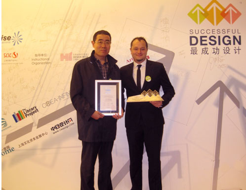 “成功设计大赛”是由上海工业设计协会和上海创意产业中心主办,已成为汇集顶尖设计的国际重要设计赛事之一。 “成功设计大赛”不单只注重后产品的效益,更为强调的是其企业战略的达成和设计流程的效率。“今年,大赛邀请通用汽车国际运营部汽车设计副总裁Bryan Nesbitt,旧金山Lunar用户体验设计总监Shiz kobara,同济大学艺术设计学院咨询院长Sotamaa Yrjo等知名设计大师担任评委,本次大赛正式成为“上海设计之都活动周”官方合作活动,共收到各个行业5大类454件产品,同获该奖的还有三星、诺基亚、惠普、飞利浦、海尔等企业旗下产品。