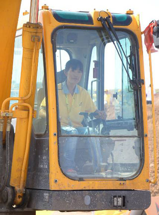 (巾帼不让须眉,女挖掘机手李迎正在考试)
