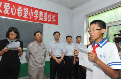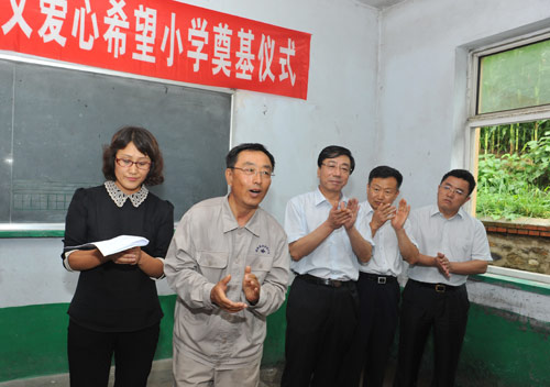 在简单而又隆重的奠基仪式上,山东临工党委副书记、纪委书记周维升发表了热情洋溢的讲话,预祝希望小学顺利落成,祝福孩子们明天更美好。郭明义表示,在山东临工的支持下,“郭明义爱心团队·山东临工分队”将继续推进在教育领域的公益事业。