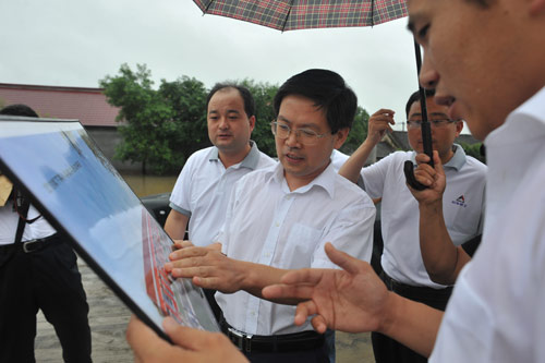 山东临工党委副书记周维升与当地教育部门讨论新校舍蓝图