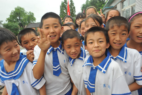 尽管当天下着大雨,但下栗村的孩子们纷纷戴着红领巾、穿着节日盛装来到学校,迎接远道而来的爱心使者。他们以庄严的队礼,向郭明义伯伯和山东临工的叔叔阿姨们表示感谢,并立志好好学习、快乐成长。孩子们纯真的笑容感染了在场的每一个人,大家在一起合影留念,并约定新校舍落成后再来共同庆祝。