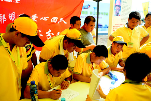 “中国好司机”鞍山活动现场,学员们争相报名郭明义爱心团队临工分队