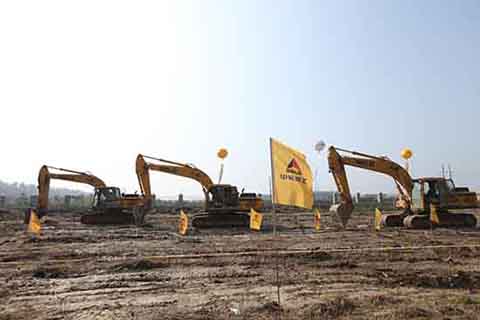 排列整齐的挖掘机,宽阔的实操场地,为学员提供良好的考试环境