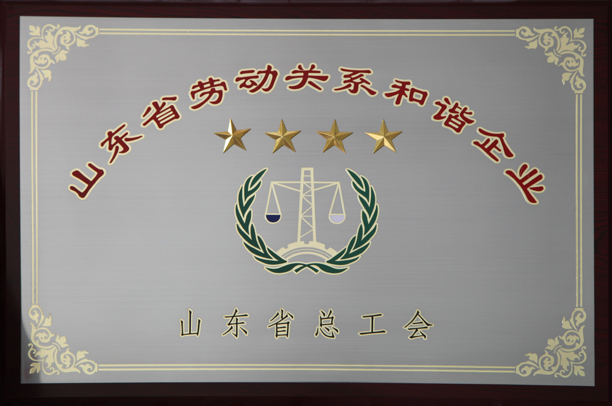 近日,公司被山东省总工会授予“山东省劳动关系和谐企业”荣誉称号。