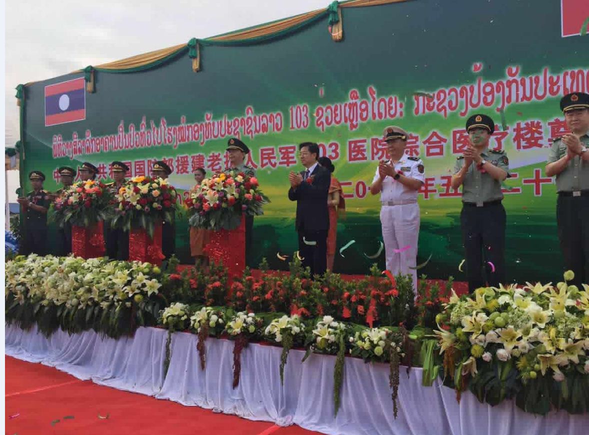 援建项目简介:老挝人民军103医院始建于1960年,是老挝目前国内四所综合性医院之一。老挝人民军103医院项目由中华人民共和国国防部援建,包括综合医疗楼和中方专家楼,总建筑面积24756平方米。其中,综合医疗楼23658平方米,主楼共9层;中方专家楼建筑面积1098平方米,共2层。项目计划于2017年12月建成,将大幅度提高该医院医疗技术水平,服务老挝官兵和人民群众。