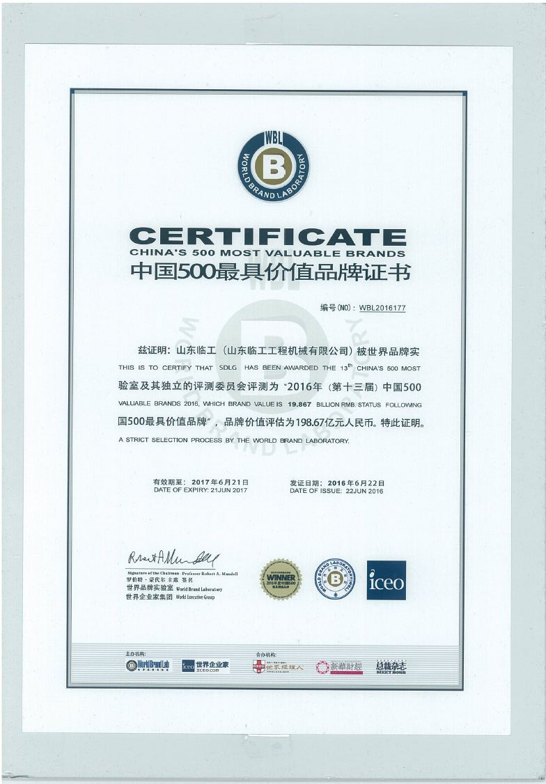 导语:在世界品牌实验室发布的2016年《中国500具价值品牌》排行榜上,山东临工以198.67亿元的品牌价值排名*177位,品牌价值同比上升39.12亿元。