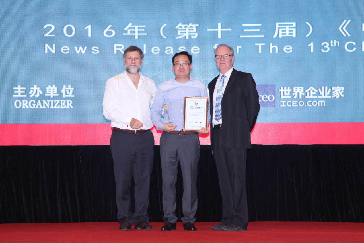山东临工品牌传讯负责人领取证书和奖杯