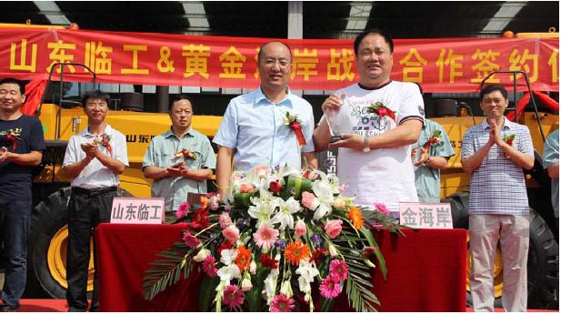 7 月6 日上午,晴空万里,喜气盈门,山东临工与日照黄金海岸公司15 台工程机械设备交机暨战略合作签约仪式在美丽的海滨城市日照隆重举行。山东临工副总经理兼营销公司总经理史生勇、相关领导,黄金海岸公司董事长出席仪式。