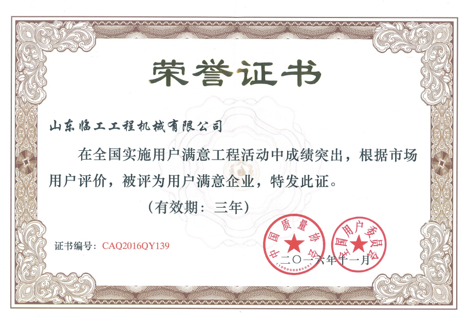 近日,因在全国实施用户满意工程活动中成绩突出,根据市场用户评价,山东临工被中国质量协会、全国用户委员评为用户满意企业。