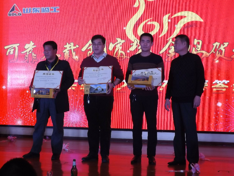 山东石方公司给客户颁发了“佳诚信奖”, “佳忠诚客户奖”等,对支持临工事业发展的客户表达了忠心的感谢。