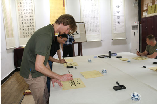 当日,在山东临工品牌传讯部部长郭少华陪同下,海外媒体代表前后参观了王羲之故居的洗砚池、晒书台、鹅池、禊亭等遗迹。记者团不仅对中国书法博大精深进行了深入了解,沉浸在中国书法精妙博深之中。不少记者团成员还跃跃欲试,亲身体验了中国书法的的魅力。