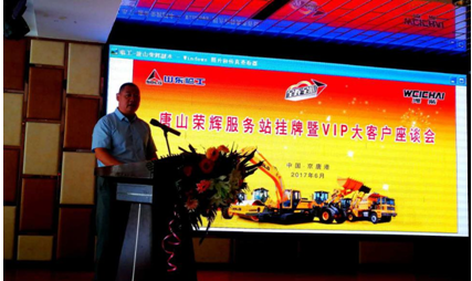 6月29日,山东临工携手潍柴动力共同庆祝山东临工唐山荣辉服务站挂牌暨感恩答谢VIP大客户座谈会在京唐港成功举行。营销公司常务副总经理唐俊斌,京唐港相关领导及福兴车队、和运车队、万利车队等VIP客户应邀参会,共200余名参会嘉宾共同见证了“唐山荣辉服务站”正式挂牌。