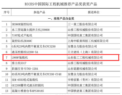 BICES 中国国际工程机械推荐产品奖,是对参展产品的先进性、可靠性、耐久性、外观质量、性价比和市场影响力等方面做出评价,表彰其中的优秀产品,并向广大用户推荐使用。组委会通过组织权威专家对BICES 2017报名参选展品认真、*立的评价,终山东临工L989F装载机喜获BICES 中国国际工程机械“推荐产品白金奖”。