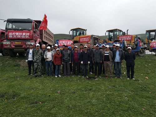 在救援现场,活跃着一支特殊的队伍——闾井镇杜家村救灾突击队。杜家村村支书纪登学是这只突击队的组织人,他说,救援突击队由当地村民自建,共有十来个人,设备也是大家自愿提供的,包括4台装载机、2台翻斗车、4辆三轮车。