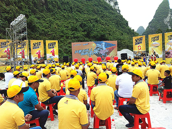 河池是著名的壮族歌仙刘三姐的故里,是遍布风景名胜的美丽壮乡。在喀斯特地貌特征的石山丛林中,山东临工搭建了一个学习与体验的工程机械园区,好司机活动的到来,给这座平静悠闲的小城带来了别样风情。在这次节日般的聚会上,好司机活动引导从业者从爱事业到爱家庭,对因工作未能陪伴家人表示歉意,把心中的牵挂表达出来,家人感动的热泪盈眶;从爱家人到爱公益,献上你我爱心,帮助贫困山区的孩子们创造一个宁静的学习环境,踊跃参与的场景令人热血沸腾。