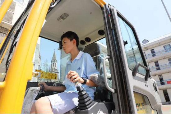 “你能想象到挖掘机出现在校园里,不是因为施工,而是为了上课吗?”一学生这样说,“这台挖掘机不仅能看,还能亲自上机操作,老师在旁告知如何进行操作,同学们能近距离去观察并了解这台挖掘机的操作原理。”