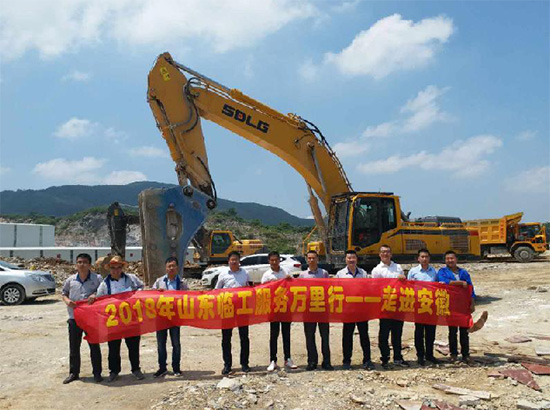 安徽临沃开展山东临工2018年“全球服务万里行”暨夏季走访关怀活动,走访组不惧炎炎烈日,奔赴皖南大挖客户身边送去贴心服务关怀。