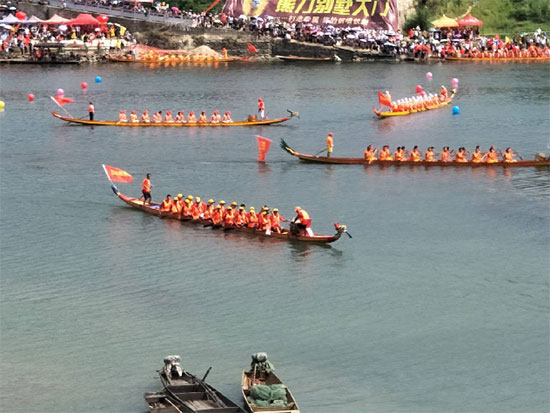 在县政府和镇政府的大力支持下,今年的“全民龙舟赛”显得格外热闹,该镇管辖下的各村几乎都组建了自己的参赛队伍,参赛运动员士气高昂,大有*一非我莫属的气势。来自省内外观赛人员多达上万,岸上鞭炮轰鸣,场面非常壮观,数架无人机全程跟踪录像,省内外多家媒体电视台进行现场直播。