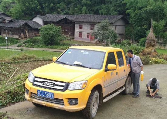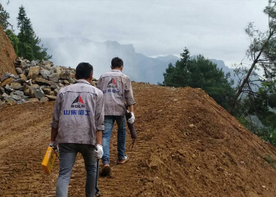 这里地势险峻,陡峭无比,服务车只能行驶到山脚便无法往上了,服务工程师万明忠、华洪早已做好准备,带上配件及工具徒步上山。汗水颗颗从脸庞滑下,衣襟早已打湿,想到山上还在等待的客户,他们未曾停下脚步。