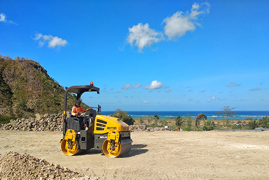 山东临工RD730压路机刚在印度尼西亚上市就已经售出*一台(如图所示)。客户PT Gemela International正在度假胜地龙目岛的一家酒店用它进行道路压实