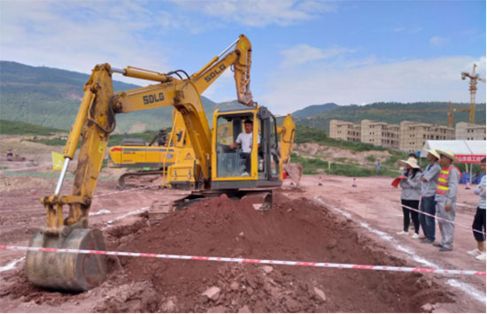 8月19日,山东临工经销商云南临沃公司在玉溪市举行临工挖掘机试乘试驾体验会。现场上百辆临工机械紧张有序作业,挖掘机、装载机的轰鸣声震耳欲聋,重型卡车来回穿梭荡起滚滚烟尘,100余名来自周边的高端客户参加了活动。