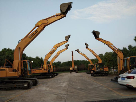 临工好司机合肥站现场展示的临工各种型号的挖掘机