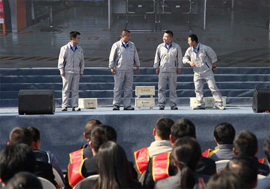 演出中,山东临工员工庄磊、孙福建、刘肖、李鹤表演的小品《我想当劳模》,取材于车间班组一线的真实故事,以曲折动人的故事情节和真挚细腻的人物情感,展现了新时代条件下广大职工崇尚劳模、勇于创新、甘于奉献的高尚情操和价值追求。