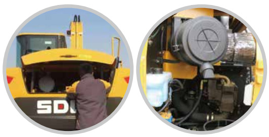 滤清器集中:空滤、燃油滤、机滤、液压油滤清器等保养件集中布置在发动机罩内,站在地面即可维护保养