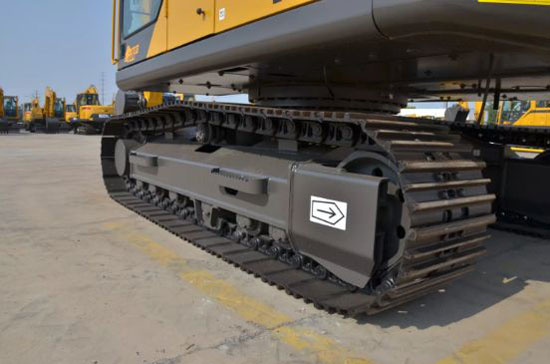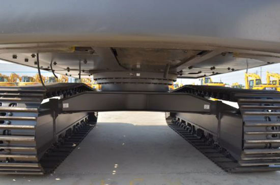 行走机构采用双速行走马达,按下翘板开关上的行走高速档后,行进中的挖掘机在路面阻力较大的情况下,自动切换为低速档,以增大驱动力。