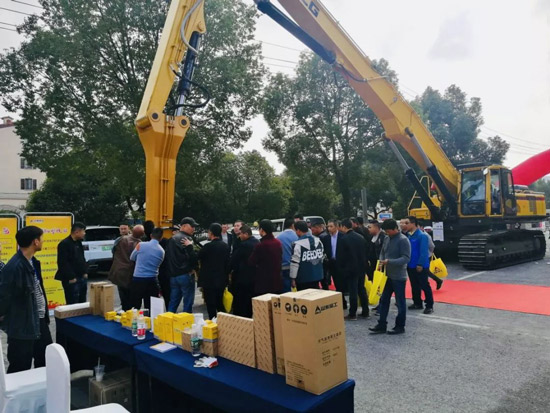 近日,常州沃汇临大型冬季订货会在“太湖明珠”——无锡召开。现场参会人员达400人,高朋满座,气氛热烈,外场摆放7台样机,其中一台E6460打桩机,格外引人注目。