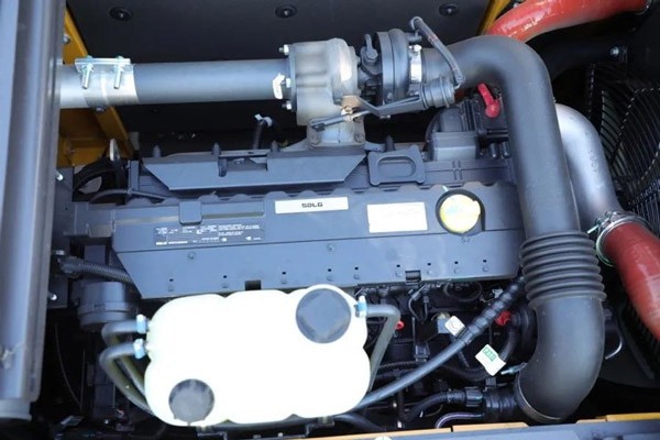就动力而言,跟别的四缸发动机不同,山东临工E6225F配置的进口道依茨SD60B发动机是六缸的,输出动力更强劲,挖掘力更大。采用了BOSCH新喷油器的高压共轨技术,符合国Ⅲ排放标准,它还可以根据工况负载自动调整功率匹配,既可以满足高速段的效率需求,又降低了中速段的油耗。