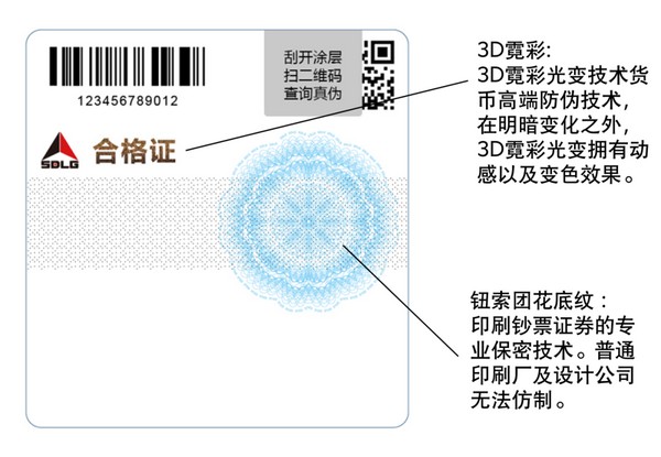 大标签采用的防伪技术与小标签一样,只是由于版面空间的限制,在内容格式排版上有所区别。