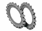 驱动轮,工程机械挖掘机与推土机的动力传输者,驱动轮一般直接是与驱动马达相接,直接把动力传给履带,从而带动整个底盘前进。