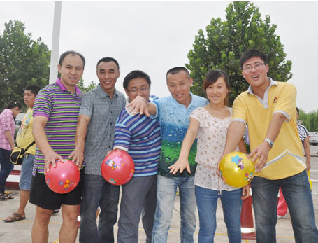 一声哨响,背靠背的七队搭档开始侧身飞奔,一边要注意脚下的步子谐调并进,一边要留意后背间的皮球有没有“溜”出来,还要时不时地关注下竞争对手的情况,每组选手都“忙”得不亦乐乎!由于默契度明显不在一个层面上,各组的差距也很快显现出来,两队夫妻档表现各异,一组一马当先另一组则不幸被落到了*后,形成了有趣的对比……